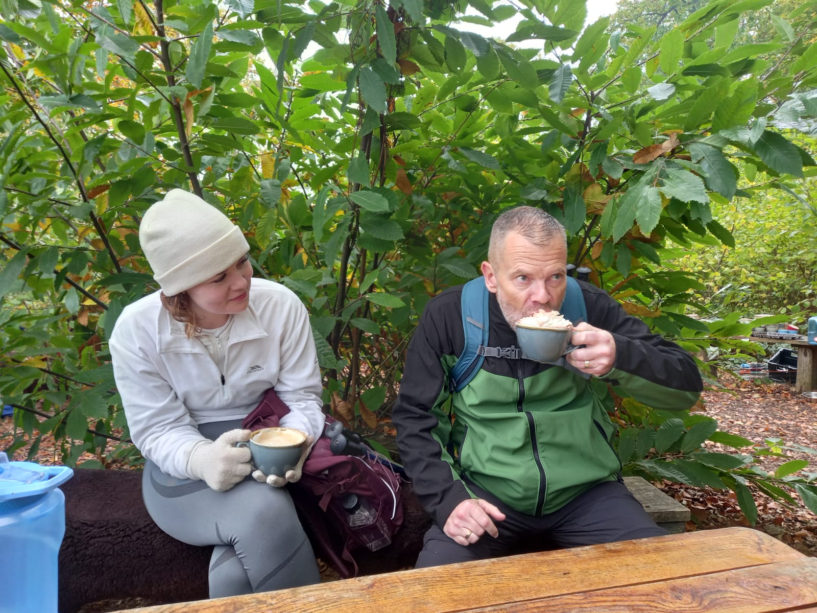 We stumbled upon a hidden gem in the forest: Coffee In The Copse, where we sat down briefly to warm our bones after the shower and rest our legs.